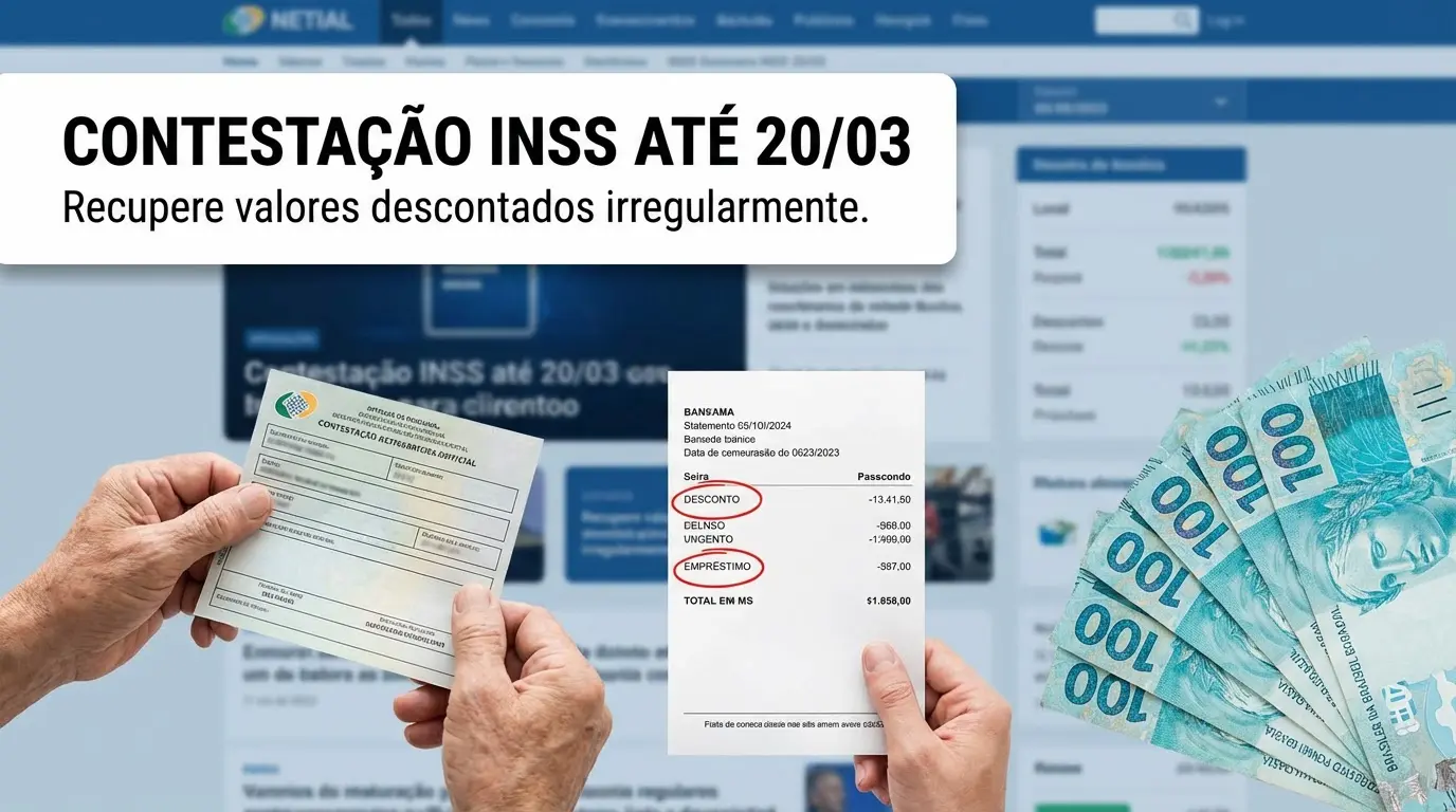 O Instituto Nacional do Seguro Social (INSS) anunciou que aposentados e pensionistas têm até 20 de março de 2026 para questionar descontos considerados irregulares em seus benefícios. A ampliação do prazo visa compensar as falhas no Meu INSS, agravadas pela manutenção dos sistemas feita pela Dataprev, responsável pelos serviços da Previdência.